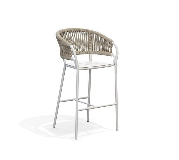 Beverly Rope garden stool with Aluminum powder coated structure. Seat and backrest in polyester UV stabilized olefin rope, beverly Rope high chairs are lightweight and easy to move around, making them a versatile seating option for outdoor gatherings and events. They are also durable and weather-resistant, making them a great choice for outdoor use.