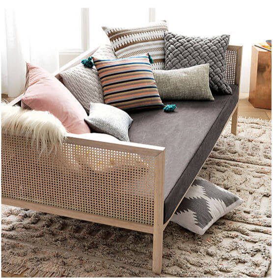 Bring the natural earthy allure to your own living space with this stylish Teak/Rattan Daybed couch, The straightforward Teak wood structure combines with the lightness of the rattan weaving for a fresh, contemporary look. The daybed is really complete when you fill it with a mix and match of pillows