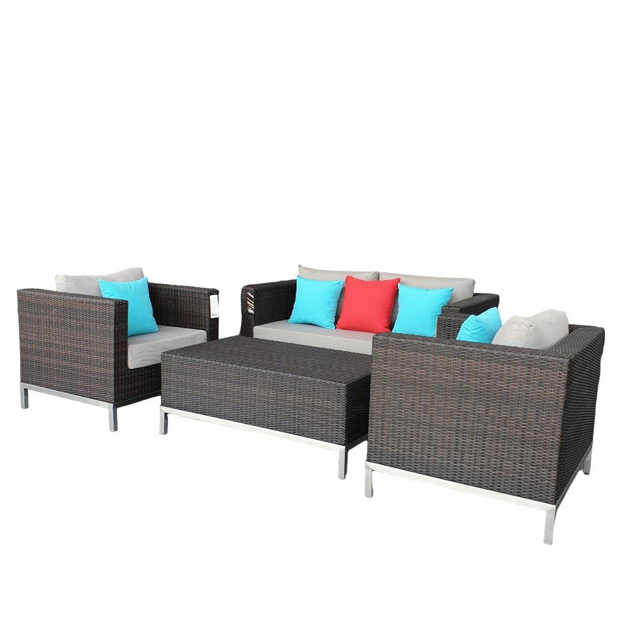 This set includes a 3-seater sofa, 2-seater sofa, armchairs, a coffee table, and side tables. It offers a complete outdoor seating solution. Whether for a luxury resort or a home garden, this wicker sofa set provides a stylish and relaxing experience. With minimal maintenance, it remains a practical and elegant choice for any outdoor space.