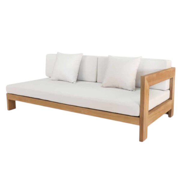 Expertly crafted from sustainably sourced, teak, this daybed boasts a sleek, contemporary frame with clean sides, adding a touch of elegance to any setting. Renowned for its durability and weather resistance, teak wood ensures long-lasting use indoors or outdoors.