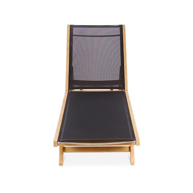 Featuring Batyline® sling Rivera Teak Flat lounger. Extremely strong piece, thanks to the teak and batyline material, to provide comfortable outdoor relaxation. The head rest is adjustable to meet your personal preference. Highly resistant to heat, UV radiation, wear, and tear.