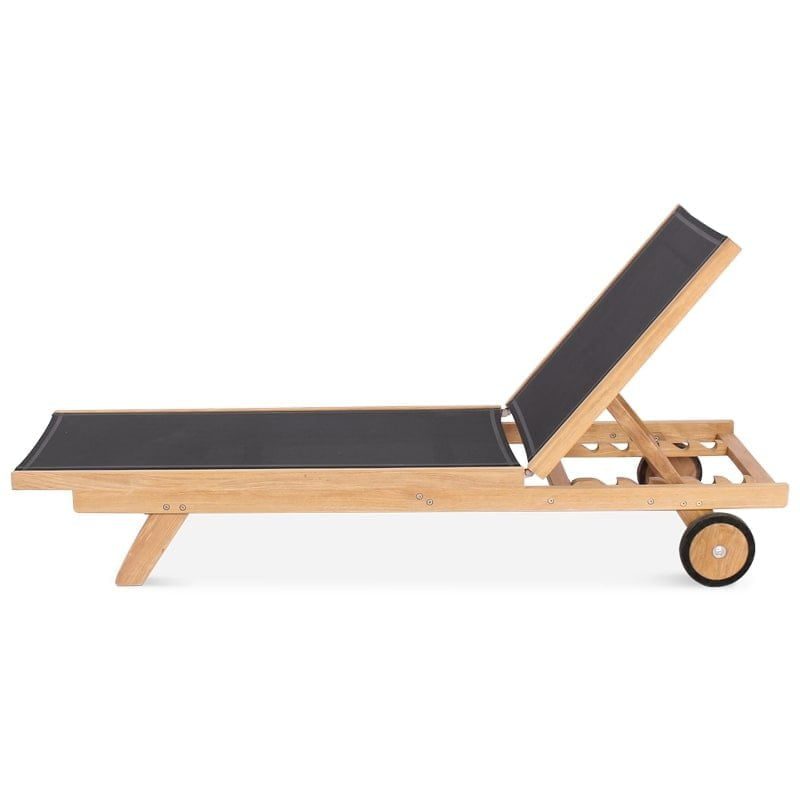 This Rivera teak wood sunbed lounger is crafted from solid grade A teak with premium stainless steel hardware and Batyline sling material. There’s no need for cushions since the sling material is comfortable and water easily drains through. The back has 4 adjustable positions for extra comfort