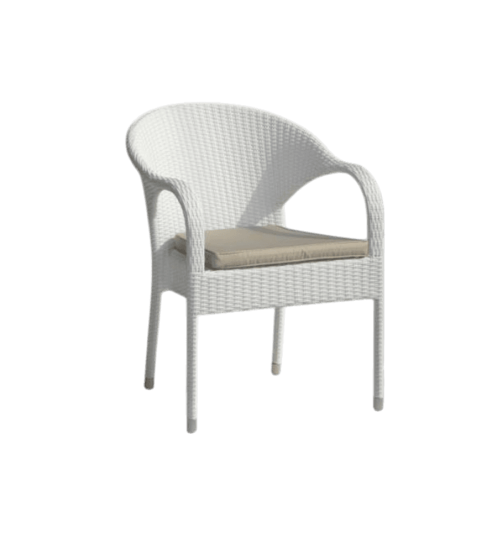 The Serena Wicker Armchair blends modern style with long-lasting outdoor durability. Made with all-weather wicker and a strong powder-coated aluminum frame, this stackable chair stays stable, rust-free, and comfortable in any climate. Its lightweight and stackable design makes storage easy, while its clean look fits perfectly in gardens, patios, balconies, or poolside areas.