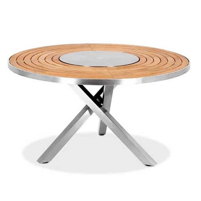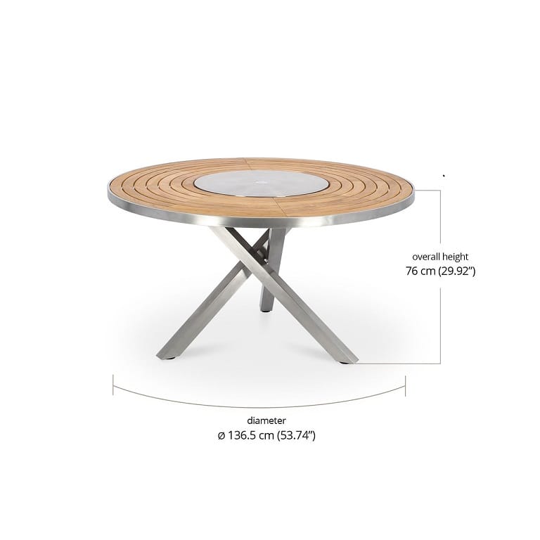 Featuring sophisticated cross-design stainless steel legs, this dining table combines elegance and functionality. Additionally, it includes a smooth Lazy Susan for effortless serving and convenience during meals.