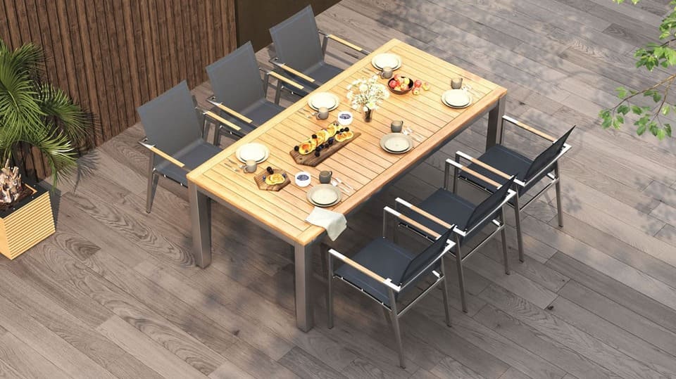 The Siro Teak Stainless Steel Table 160 combines modern design with natural charm. Featuring a solid teak wood top and stainless steel legs, it offers strength, durability, and timeless style. At 160 cm, it is ideal for compact dining areas, patios, or balconies. Suitable for both indoor and outdoor use, this table delivers elegance and practicality in one.