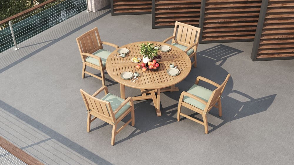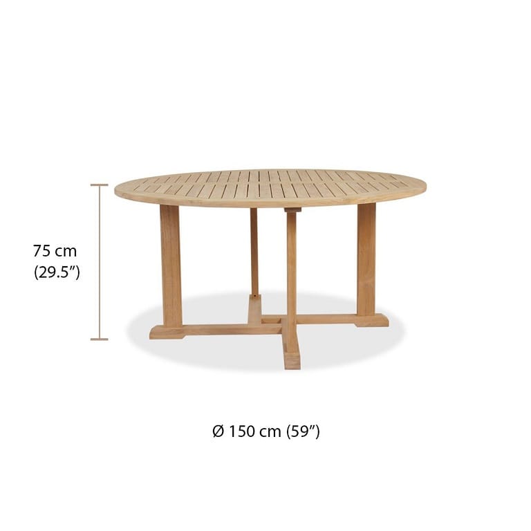 The Teak Gateleg Round Table 150 is a smart, space-saving table for any outdoor area. Made from solid teak wood, it handles rain, sun, and daily use while keeping a warm, natural look.