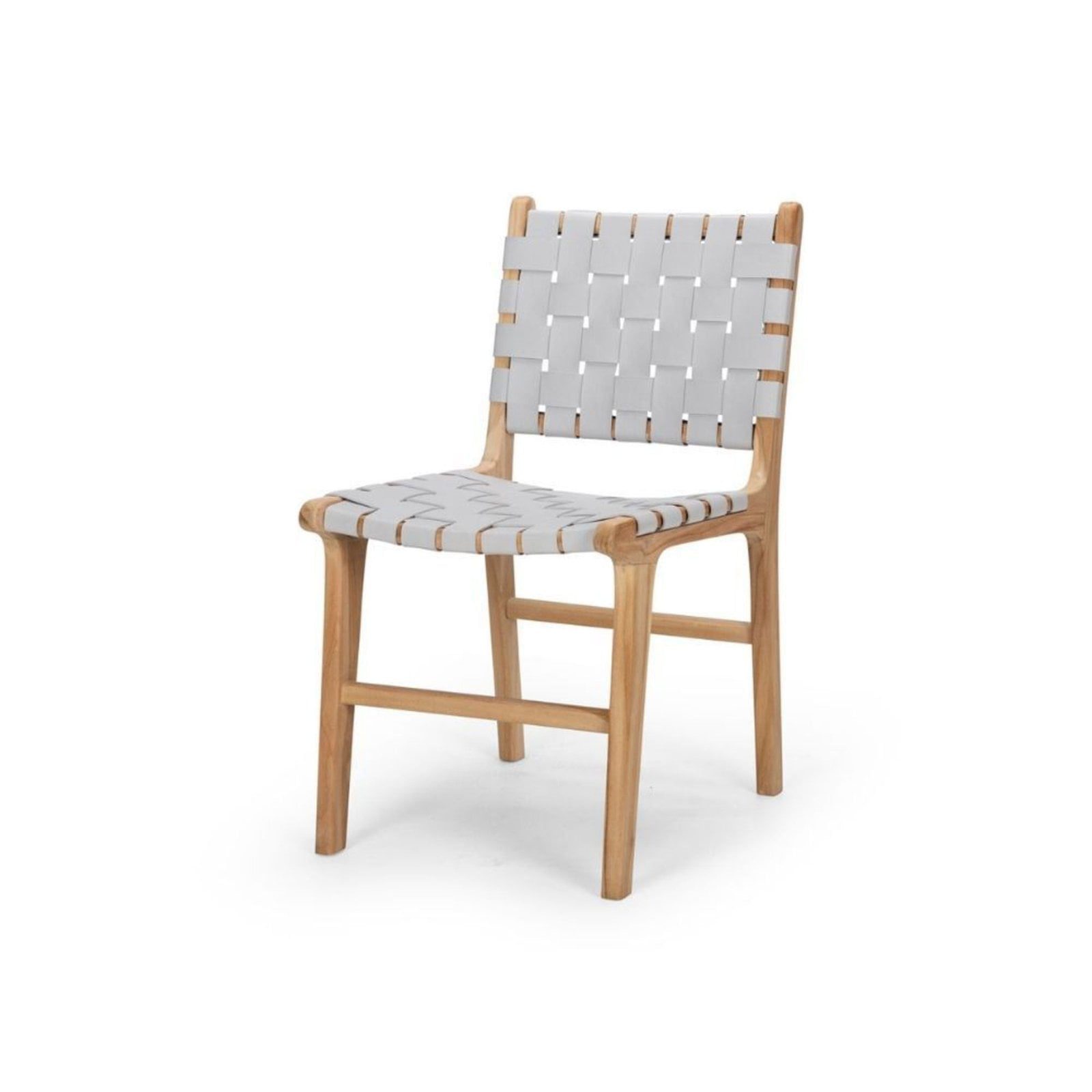 The woven leather seat and back provide exceptional comfort, making every meal a delightful experience. Ideal for contemporary decor, this chair enhances your dining area with trendsetting style. The naturalwood frame adds warmth and sophistication, making it a versatile choice for any modern home.