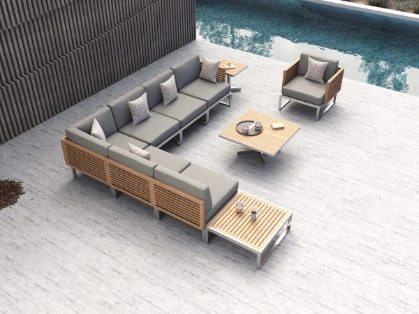 The Tessin Teak Stainless Steel Sofa blends contemporary design with exceptional durability, making it a standout choice for modern living. Crafted with a solid teak wood frame and supported by sleek stainless steel legs, this sofa offers both strength and timeless style.