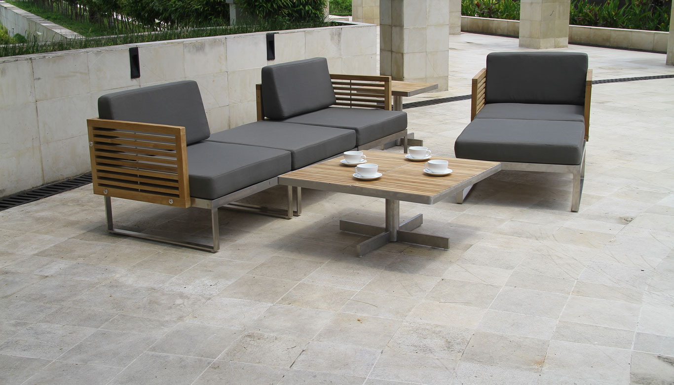 Perfect for patios, gardens, or lounge areas, this teak and stainless steel sofa delivers a balance of elegance, durability, and functionality. Pair it with matching pieces from the Tessin Collection to create a cohesive and stylish seating arrangement.