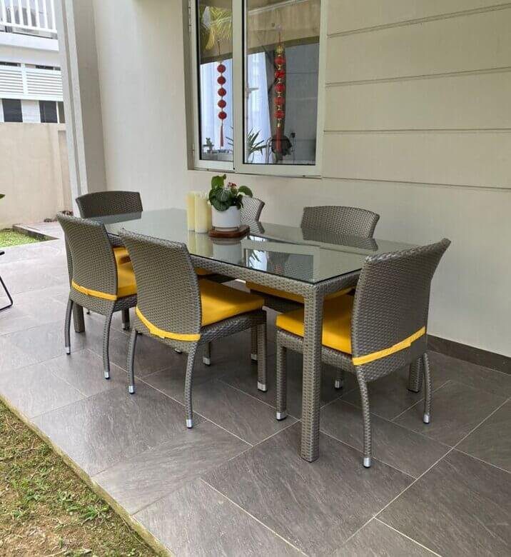 Indulge in outdoor luxury with the Calla 6 Seat Wicker outdoor Dining Sets, meticulously crafted from premium HDPE Rehau wicker. Elevate your summer gatherings with this exquisite ensemble, designed for both durability and elegance. Whether it’s a lively BBQ or an intimate dinner affair, this set promises unparalleled comfort and style.